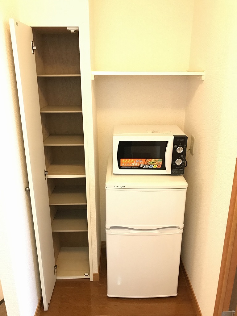 バストイレ別、照明器具、調理器具、エアコン[ 1基 ]、下駄箱、浴室内乾燥機、給湯[ LPガス ]、IH調理器具[ 2ヶ口 ]、CATV(基本ch)、室内洗濯機置き場、冷蔵庫、洗濯機、カーテン、電子レンジ、テレビ、ベッド、テーブル、チェア
