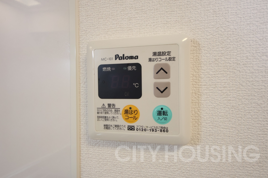 バストイレ別、エアコン[ 1基 ]、フローリング、ベランダバルコニー、下駄箱、温水洗浄便座、モニタ付インターホン、IH調理器具[ 2ヶ口 ]、照明器具、給湯[ LPガス ]、室内洗濯機置き場、CATV(基本ch)、洗濯機、室内物干し、オートロック、宅配ボックス、エレベータ、光インターネット[フレッツ光]
